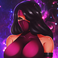 signature outfit and mask, which are iconic elements of her appearance within the franchise. The artwork is vibrant and detailed, capturing the essence of Mileena's