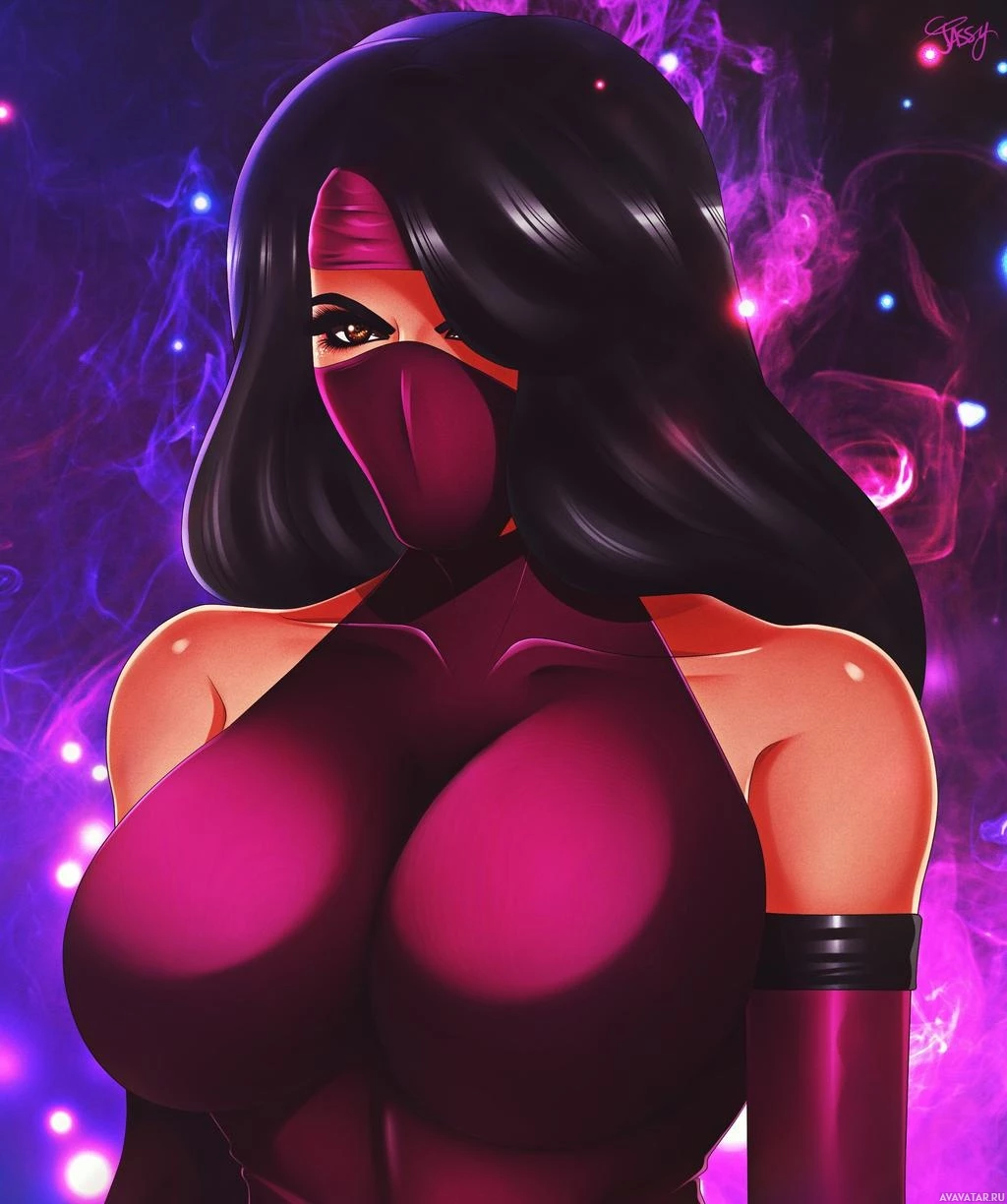 female character from the "Mortal Kombat" series of video games. The character is depicted with her