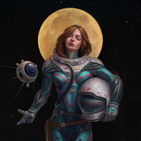 created character, who appears to be an astronaut. She has