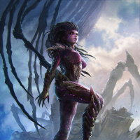 the main characters in the series. She is shown with her purple and black armor, which includes spikes and sharp-looking details, suggesting she has abilities related to strength or combat within