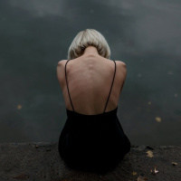 late afternoon or early evening when the sky is not brightly lit. The focus on the silhouette creates a contemplative atmosphere without revealing much about the person's identity beyond their gender—a girl or woman with