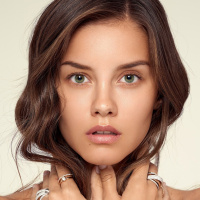 long hair, and her makeup is done to highlight her features. The lighting in the image is soft and evenly distributed, emphasizing her facial features without creating