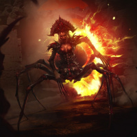 a barren landscape with cracked earth, indicating that the scene might take place in an otherworldly or undead region. There are also flames present in the image, adding to