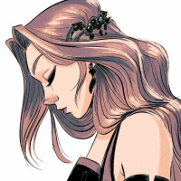 deep thought or sadness, as suggested by the downturned corners of her mouth and the gentle creases in her forehead. The style is reminiscent of comic