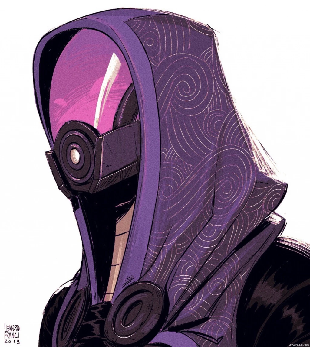 the video game "Mass Effect," specifically Tali. This character is known for her distinctive purple and