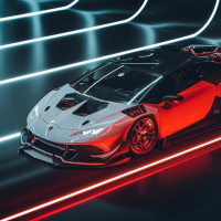 a sports car with a sleek design. It appears to be a Lamborghini, characterized by its distinctive