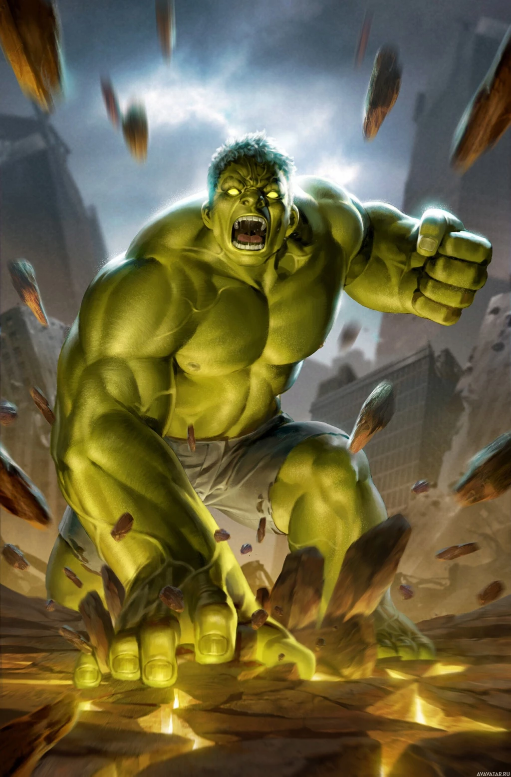 The image features a character known as the Hulk, who is a well-known superhero from
