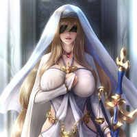 blonde hair and blue eyes. She is depicted wearing armor that suggests she might be a warrior or heroine from