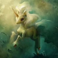 a fantastical scene featuring an unicorn. The unicorn has a light