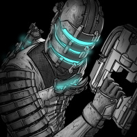 The image depicts an illustration of a character from the video game "Dead Space." This character is known for wearing advanced space armor and weaponry, which are typical elements found in this survival horror game series.