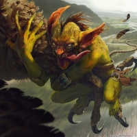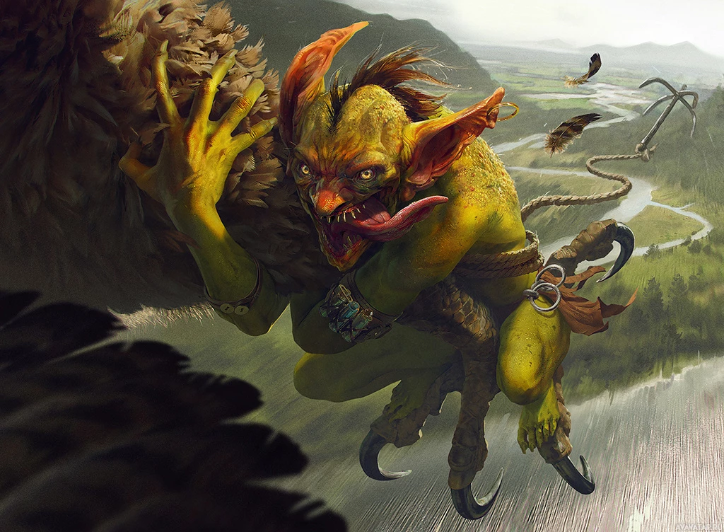The image depicts a fantasy-style creature that resembles a goblin. It has