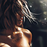 a female character with her hair flowing in the wind. She appears to be looking upwards, possibly towards