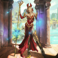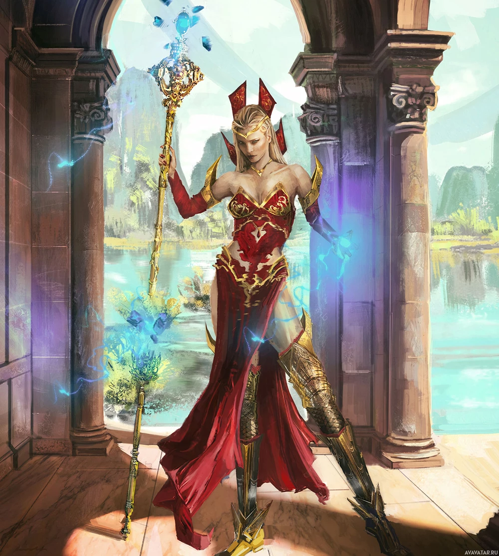 fantasy stories. In her hands, she holds what appears to be magical staffs or wands, which often symbolize magic and