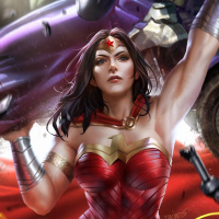 The image shows a character that resembles Wonder Woman, an iconic superheroine from
