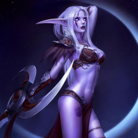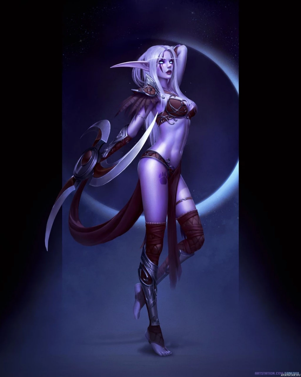 a full moon and a starry sky, suggesting a nighttime setting. This character could be a warrior or rogue, given the armor and sword combination.