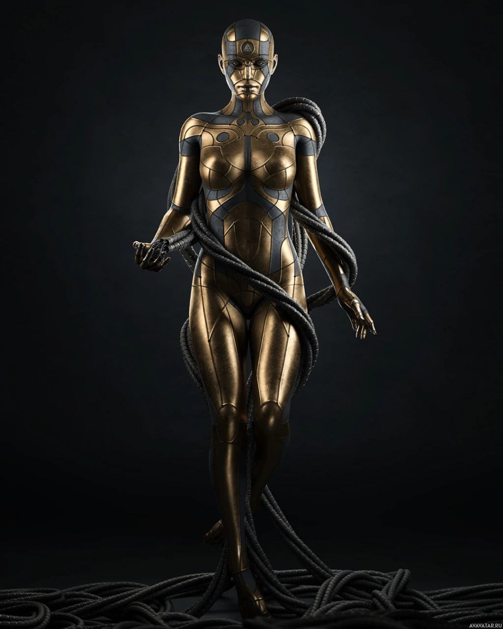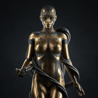 a humanoid robot with a shiny, metallic surface. It appears to be a depiction of a futuristic or advanced