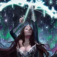 light effects around her. Her attire suggests she might have an enchanted or magical theme associated with her abilities within the game.