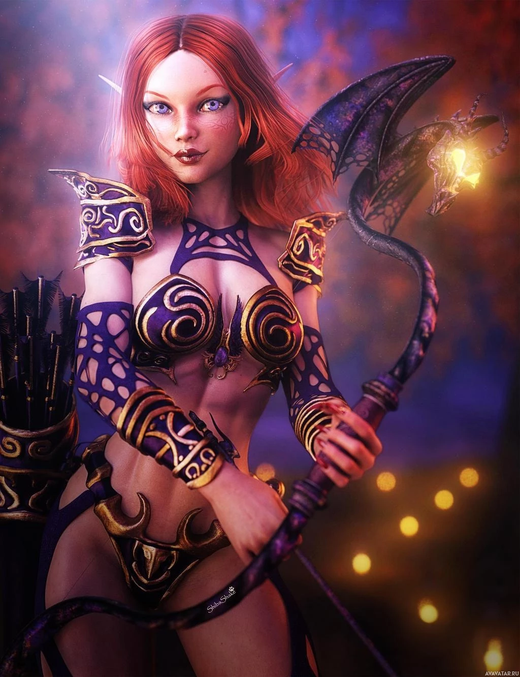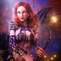 The image depicts a fantasy-style character. She has
