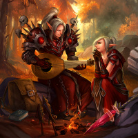 the fantasy universe of "Warcraft." It shows two characters, an elf and a dwarf, engaged in