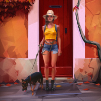 cowboy hat and a yellow top, suggesting a casual or western style of dressing. There are