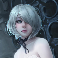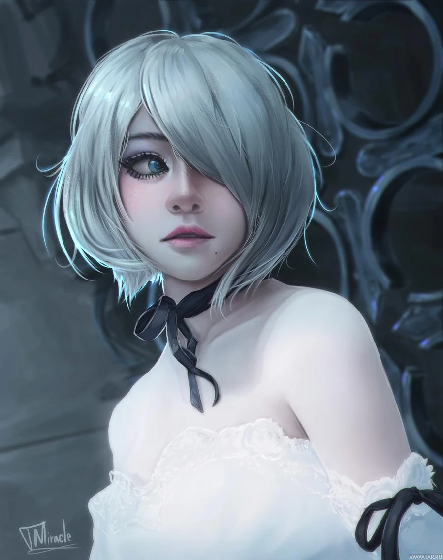a female character with a gothic or fantasy-inspired design. She has short, silver-gray hair and is wearing a dress that appears to be made of bones, suggesting she might be a representation of
