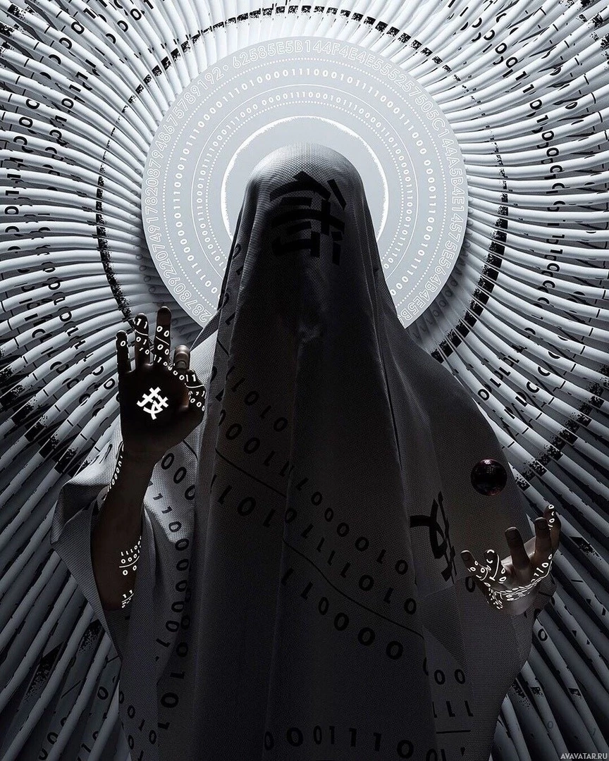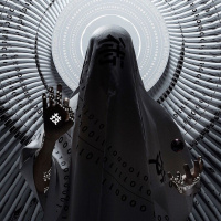 a hooded cloak, which obscures their face and identity. They are holding what looks like