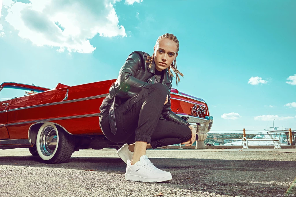 nature of the pose and the choice of vehicle.