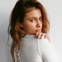 a neutral expression on her face. The background is plain, providing no distractions from the subject of the photograph.