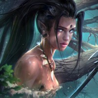 forest setting, enhancing the ethereal and otherworldly atmosphere typically found in fantasy artwork.