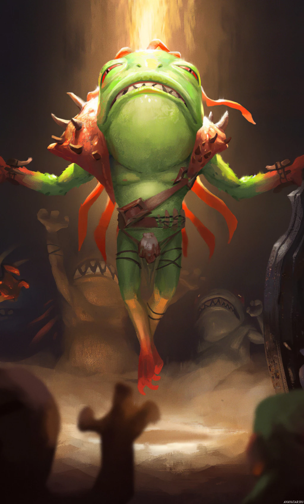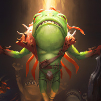 a fantasy creature resembling a frog, standing on two legs and wearing armor. The creature is styled in a way that might be associated with the Warcraft series, a popular