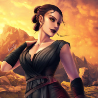 The image shows a digital illustration of the character Rey from