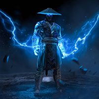 elemental powers such as fire, lightning, or ice. In this particular image, the character appears to be using electricity as part of their move set. The background suggests a high-