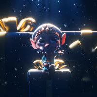a festive feel with star-like lights and floating presents in the air, suggesting a celebratory or Christmas theme.