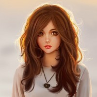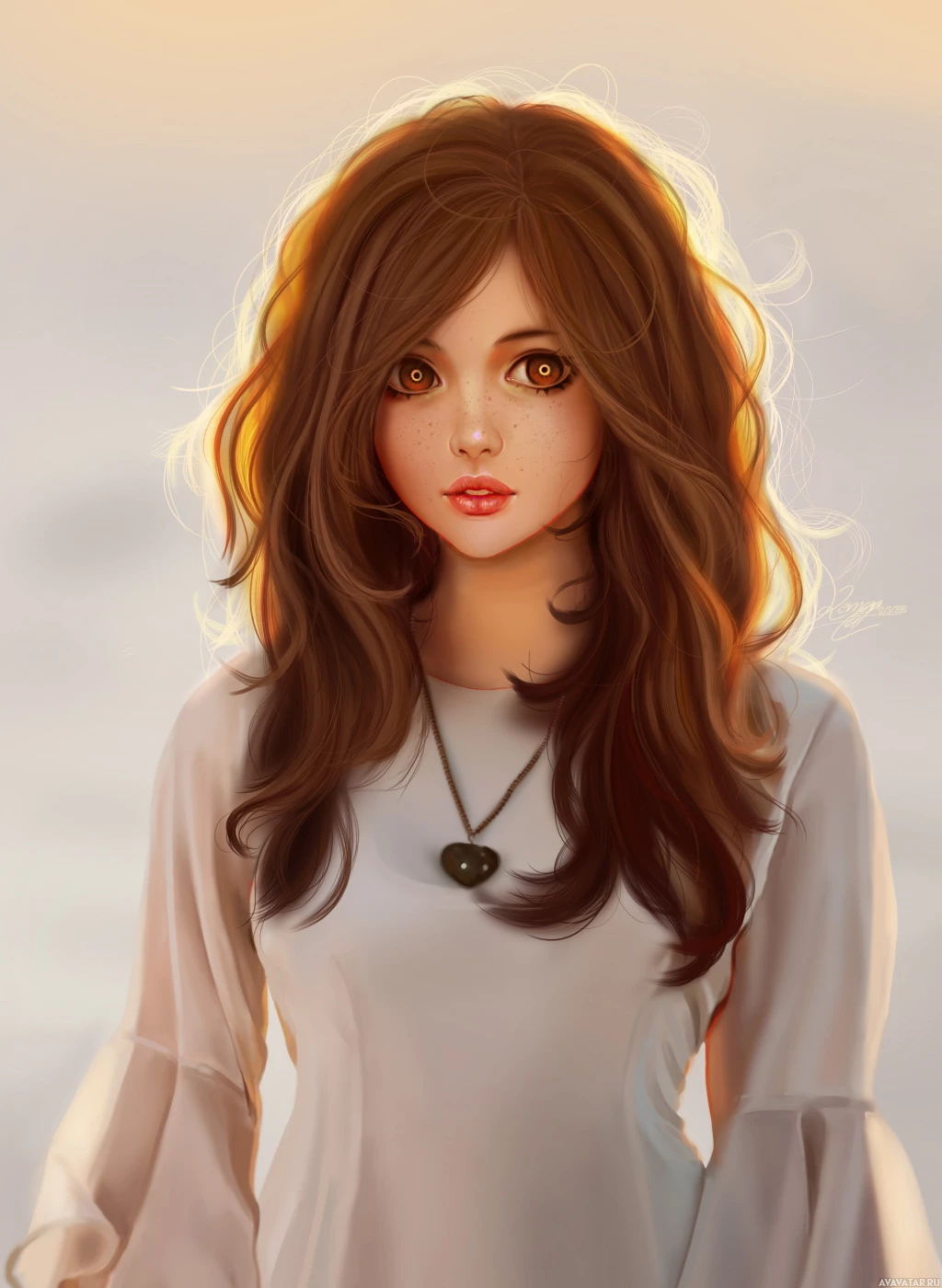 full lips and is looking towards the viewer with an expression that could be interpreted as gentle or contemplative. The character wears