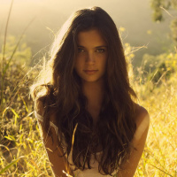 tall grass or a field during sunset. She has