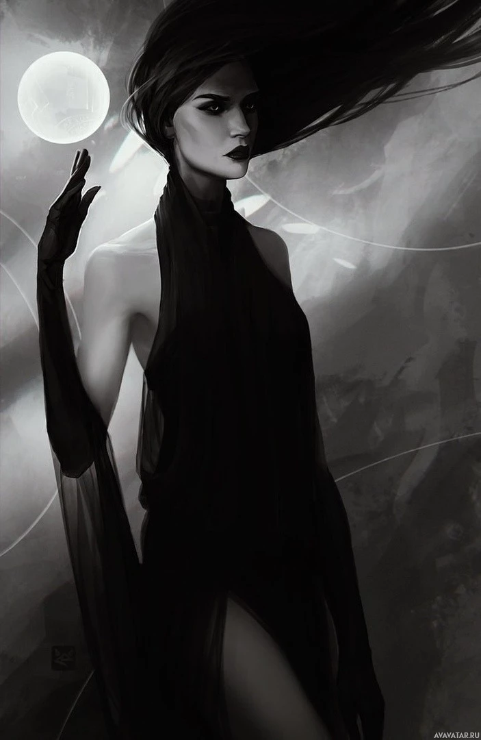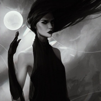 a crescent moon, which adds to the overall mystical or nocturnal atmosphere of the artwork. The style of the image suggests it could be from a fantasy or mythical context, with