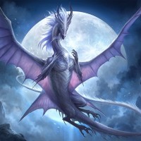 The image features a fantasy-style dragon. It appears to be a night scene with