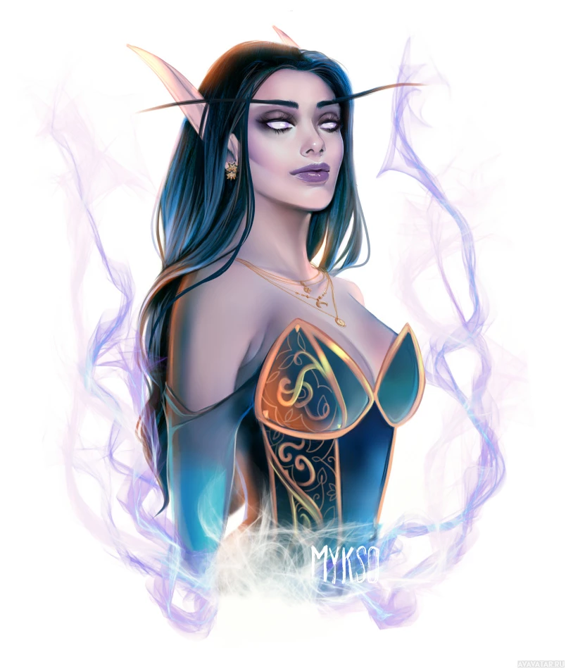 an illustrated character who appears to be a female fantasy-style figure. She has long