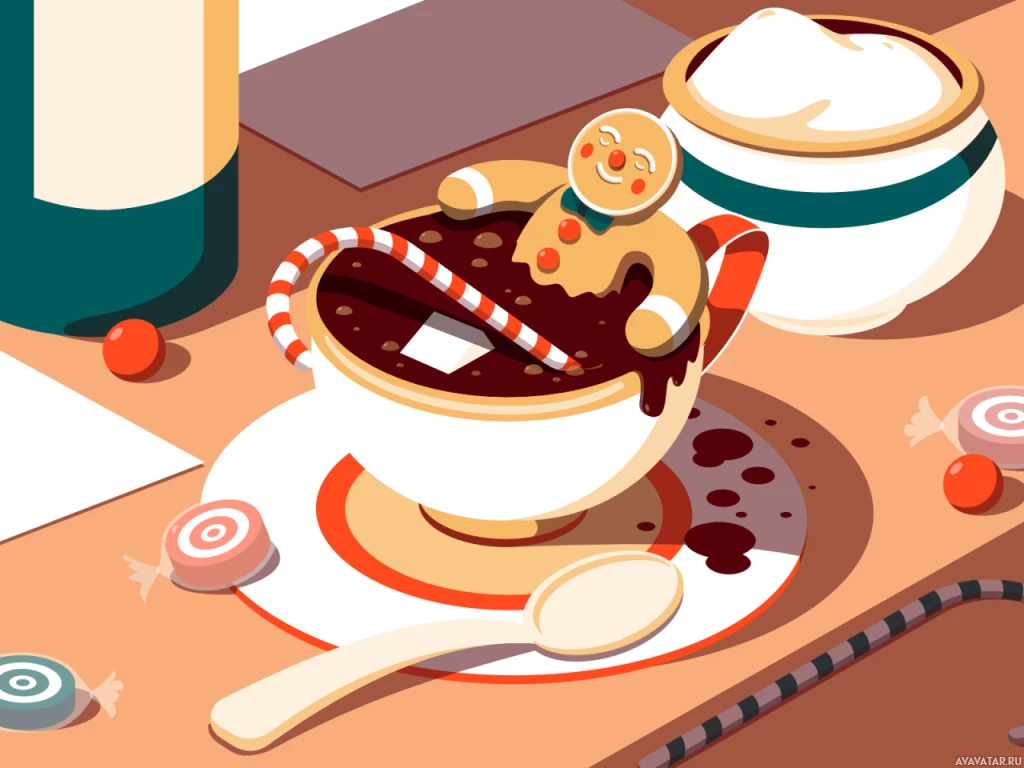 a warm drink with candy or marshmallows mixed in. The illustration has
