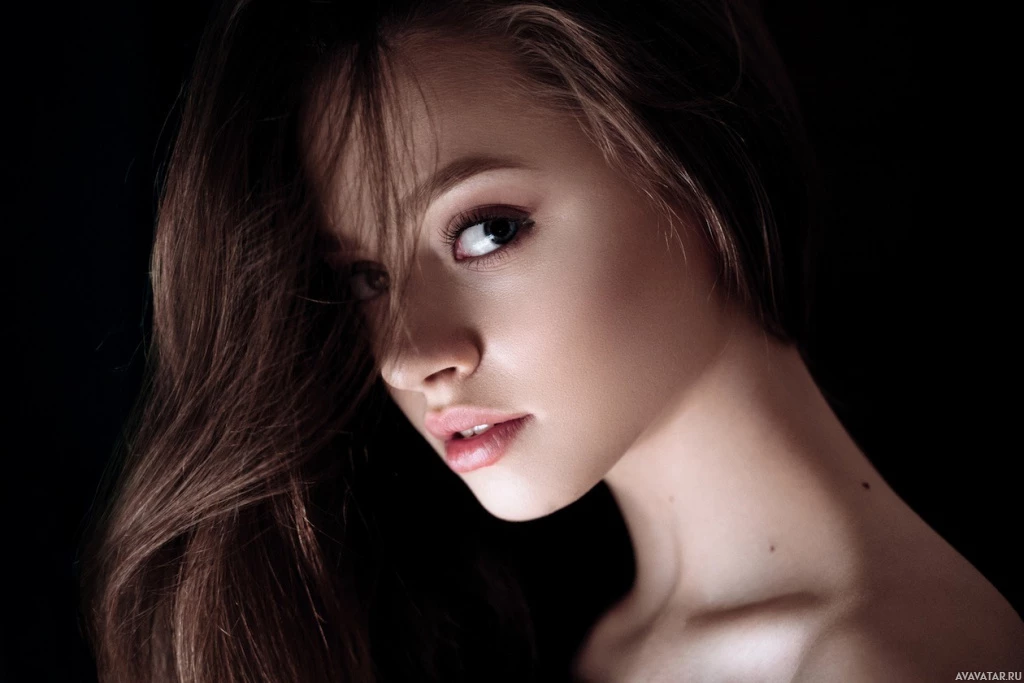 long hair looking to her left. She appears to be in a thoughtful or introspective pose, and her expression is calm. The image has