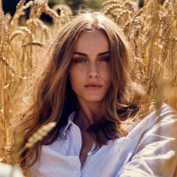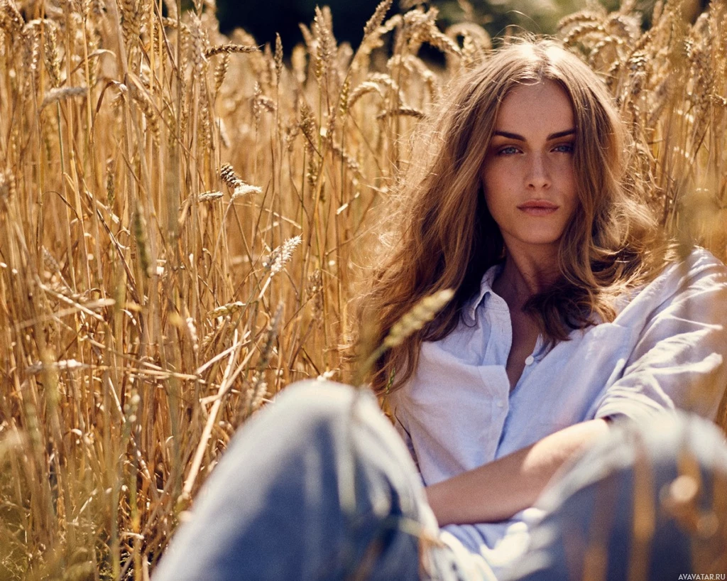 На картинке изображена женщина, сидящая в поле, заросшем высокой травой. Она одета в белую рубашку и, кажется, расслаблена или, возможно, о чем-то размышляет. На заднем плане изображена пшеница золотистого цвета, что указывает на то, что фотография, возможно, была сделана в конце лета или начале осени, когда собирают зерновые культуры.