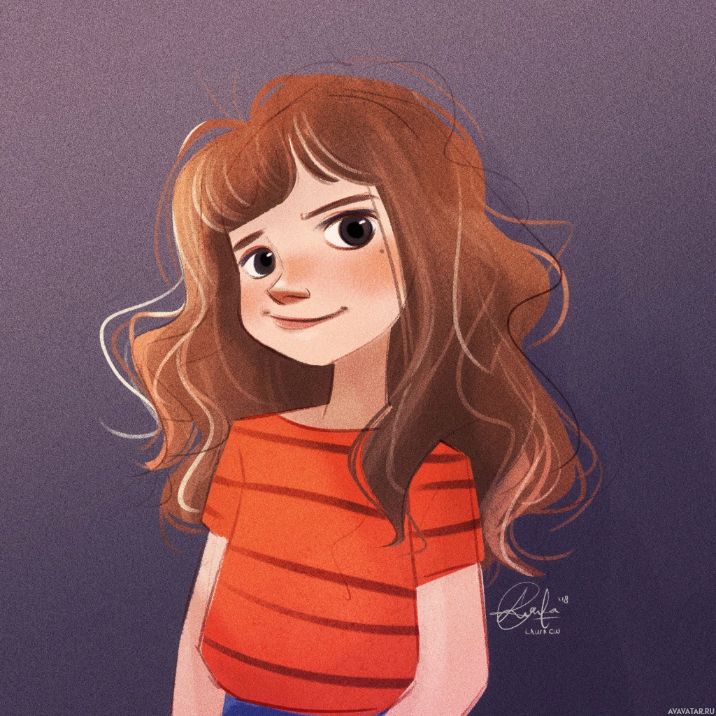 an orange top and appears to be smiling at the viewer. This character could also potentially fit into the category of "red-haired" if that description refers to her hair color being depicted as red in some contexts. The artwork is colorful and has a friendly, approachable style typical for illustrations aimed at