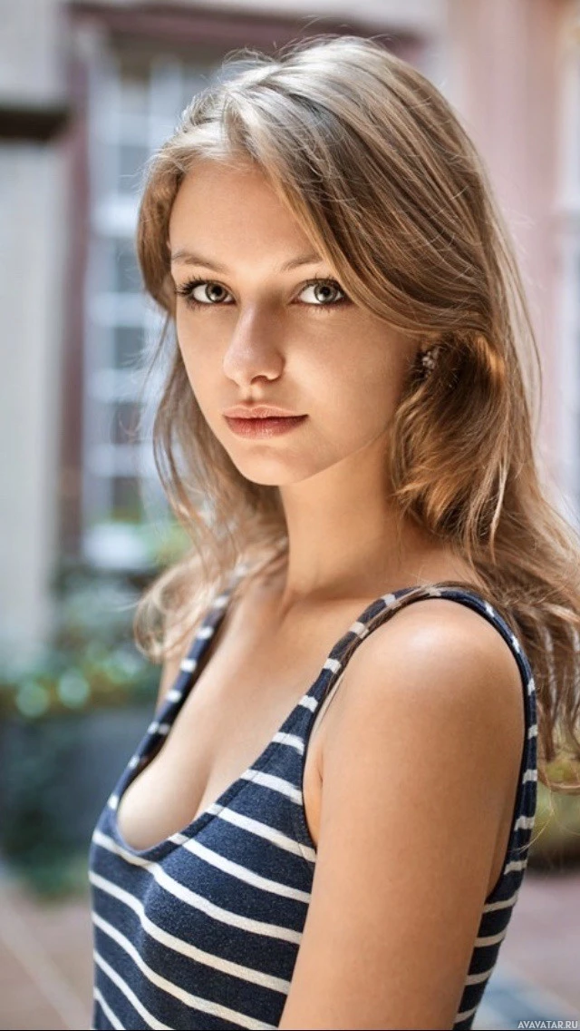 На картинке изображена молодая женщина со светлыми волосами. На ней надет топ без рукавов, и кажется, что она смотрит прямо в камеру. На заднем плане изображен пейзаж на открытом воздухе, но нет никаких характерных ориентиров или объектов, которые могли бы дать конкретную информацию о местоположении.