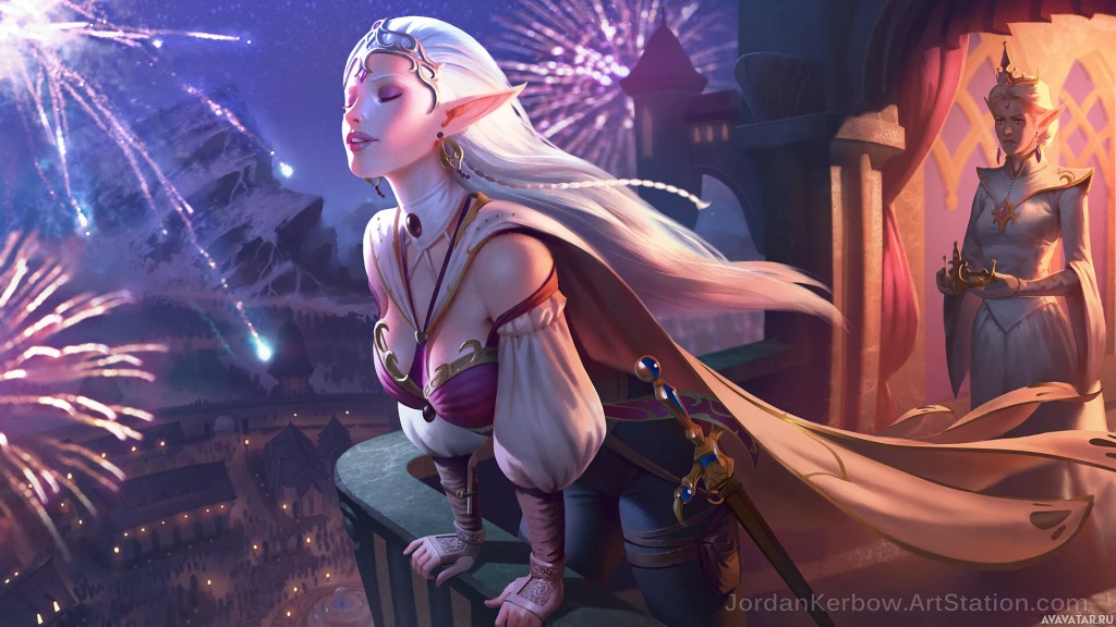 a celebratory atmosphere with fireworks illuminating the sky, implying the event is taking place at night during festivities.