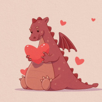 The image features an illustration of a dragon. It is depicted with traditional dragon characteristics such as wings and fire breath, but the heart in its hand gives it a more endearing and non-threatening appearance. The background is neutral and does not distract from the dragon, which is the main focus of the image.