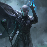 horror setting. This character is depicted as a mage or wizard, wearing a cloak and holding a staff, which are common accessories for such characters in