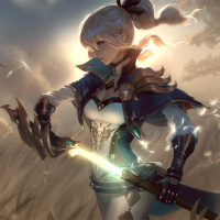 blonde hair, wearing armor and holding what appears to be a sword. She has an intricate outfit, suggesting she might be from a fantasy or video