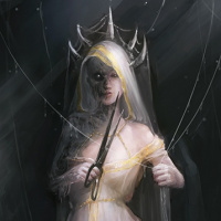 sort of power over death or the afterlife. The overall atmosphere of the artwork is dark and mysterious, evoking themes of magic, danger, and possibly a narrative related to mortality and transformation.