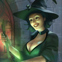 a female character who appears to be a witch, as indicated by her attire and the setting. She is wearing