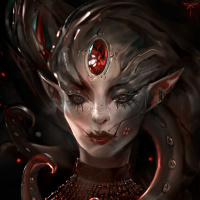 a dark background with hints of red accents, further enhancing the overall atmosphere of the piece.